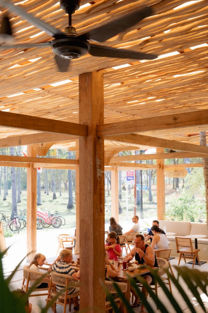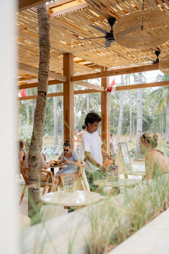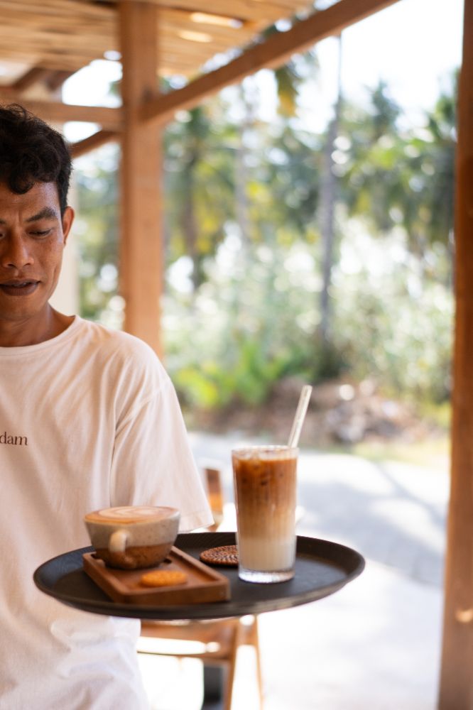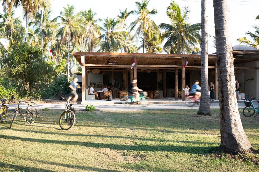 Ons restaurant is helemaal vanaf nul opgebouwd. We wilden een plek creëren die past bij de unieke charme van Gili T: een eco-eiland zonder scooters of auto’s, waar alles met de fiets of paard-en-wagen gaat. Het resultaat is een open, natuurlijke ruimte met een groot terras, waar je kunt genieten van het uitzicht, een verse smoothie en natuurlijk heerlijk eten.